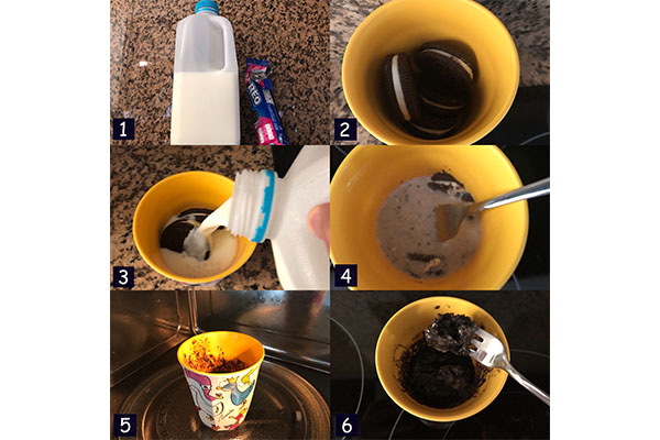 - Crush the oreos into small bits in a mug.