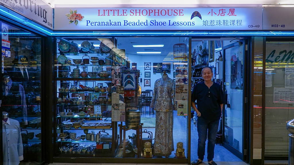 This decision led him to take over a shophouse that he was already tendering for on Bussorah Street and he opened The Little Shophouse in 2003. The location in a busy tourist spot helped Robert turn it into a retail shophouse, where he sells his beaded craft and porcelain souvenirs to the many tourists who visit.