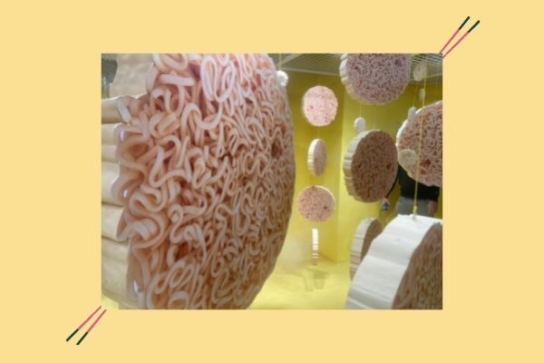 As you walk further in, you’ll find yourself in the very first installation – the instant noodle rainfall. In this instalment, dozens of ‘noodles’ are suspended from the ceiling. With mirrors surrounding the room, it gives the illusion that you’re stuck in an instant noodle maze, which makes for a fun start to the experience.