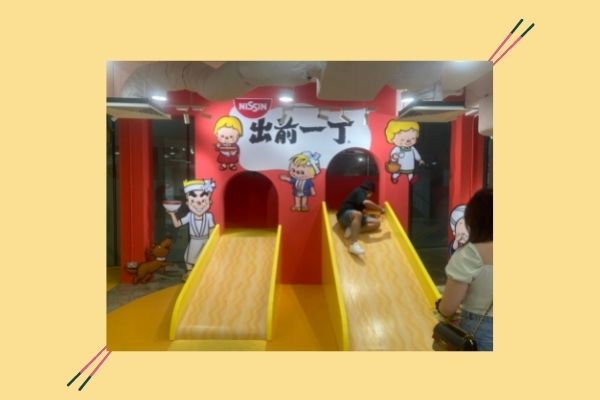 However, the giant swing and slide are not even the best part. The real attraction here is really the life-sized cup noodle standing nearly 2 metres tall. The gigantic cup noodle which features an intricate design that truly mimics that of your regular Nissin cup noodles you can find in your convenience stores. On top of that, you can even become the ‘ingredient’ and stand inside the cup noodle to take pictures. This really takes the phrase “you are what you eat” quite literally.