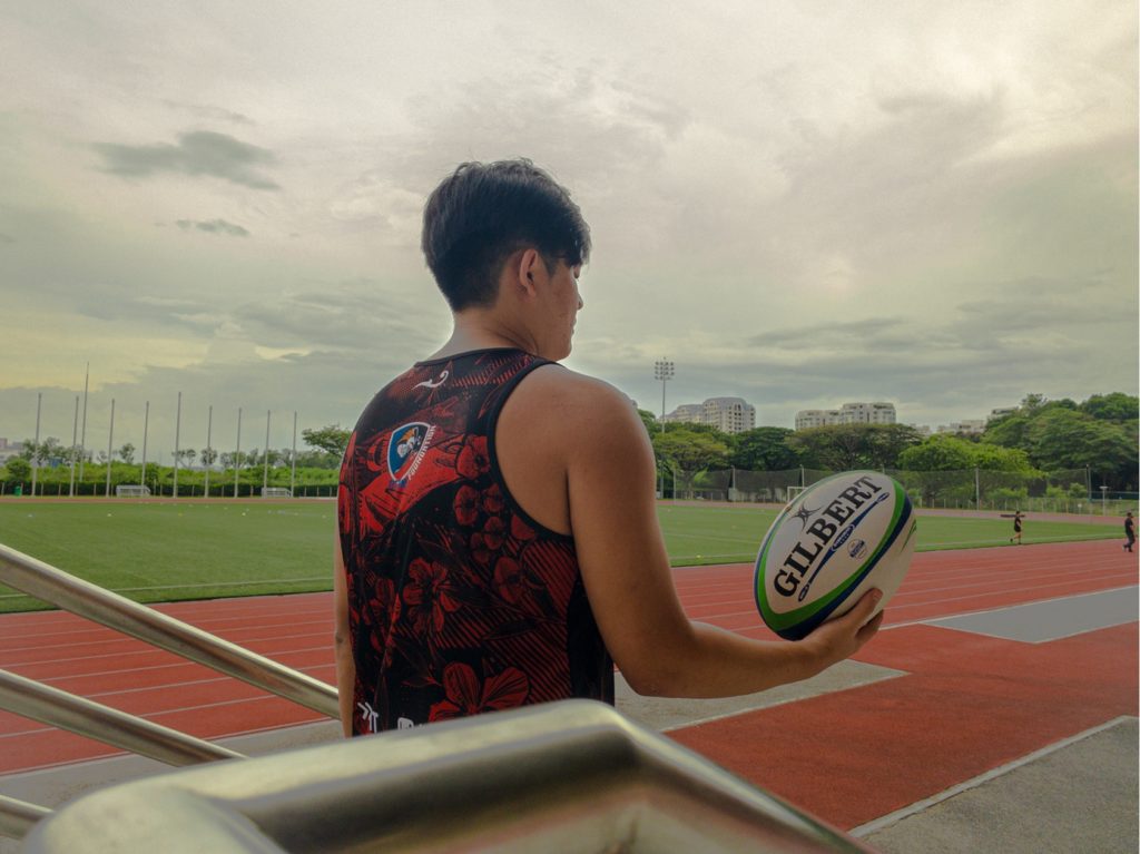 Ezekiel Lee, a rugby athlete representing his school, getting dressed up and ready for his evening training in Temasek Polytechnic, Singapore, May 25, 2021.