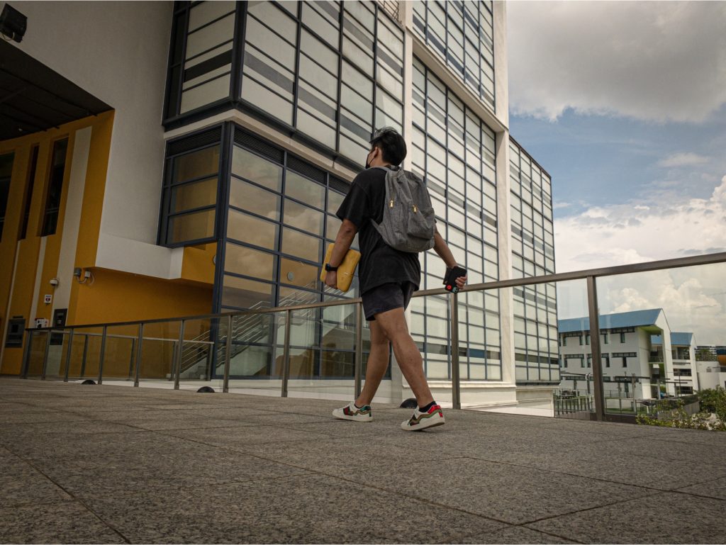 Ezekiel Lee, 18, a student from Temasek Polytechnic, walking towards the school field to prepare for rugby training after his lesson in Temasek Polytechnic, Singapore, May 25, 2021.
